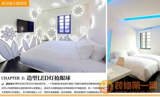 商业空间分析:用造型LED灯装饰床头背景墙,不仅能够营造浪漫氛围,也可以作为卧室的辅助光源。卧室以纯白为基调,通过折纸制作出的个性图案创造出独特的灯光效果,还可以自行控制灯光颜色。需要注意的是,灯光背景墙作为卧室的主角,房间内不宜加入过多的色彩元素,避免主次之争,只有黑和白就能够设计出让人惊喜的房间。